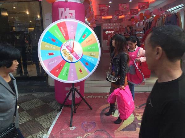 幸运转盘,越转越幸运,这是我们此次活动主题,在音响响起之季,顾客陆陆续续的开始光顾我们的店,虽然店面面积不大,但顾客还是忍不住想去一探