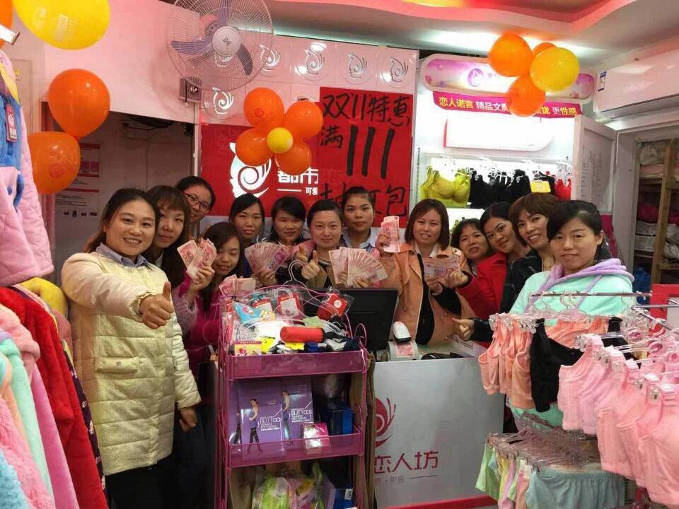 李总在长沙区域有好几家门店。其中这个二店。是个小区店,周围有很多内衣店。但是我们李姐把都市恋人坊在这区做的是有声有色,真正做到了家喻户晓的知名度。