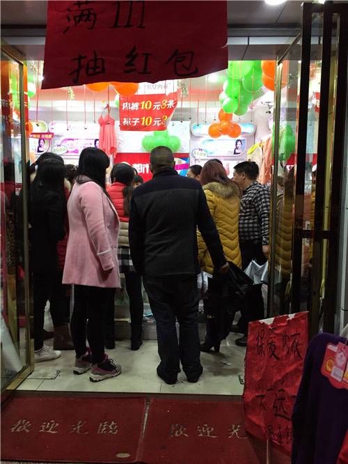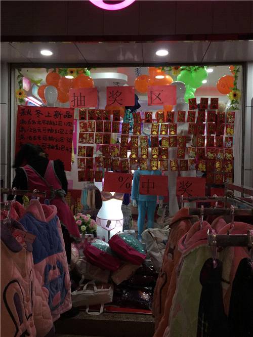 当天正好的赶上长沙员工培训会,下午我们组织员工来店里实行,到店铺的时候已经是下雨4店半了,天还在下着大雨,刚开始我们一起布场的时候,厉总心里很没有底,心想;今天都这会了,还下那么大的雨,担心业绩做不上来,活动当天我们把夹棉和保暖衣陈列在店铺门口,还在布场时就有顾客过来看,在我们活动前,街道还是比较安静,当活动一开始,整体街都变得热闹了,当天我们做的是抽红包,送礼品的活动,把红包贴满橱窗,特别惹人注目,对面路过的人都过来凑热闹,我们活动当天的客单价也是比较高的,一个顾客就买了八百多了,到晚上就九点多闭店的时候,我们的销售业绩达7163,厉总脸上也是笑开了花。