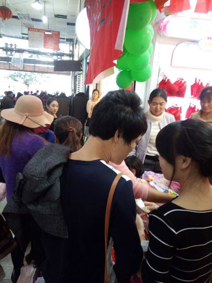 活动当天,早上把一切工作准备做好后进店的顾客一直不多,到中午十二点当天业绩才一千多,不过我们的导购妹妹依然没有灰心,皇天不负有心人,下午人渐渐多起来了,现在我们就来看看活动当天饱满的人气照片吧