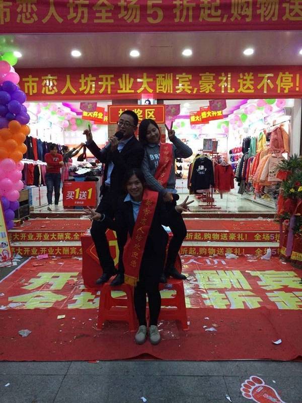 开业前一天是细雨绵绵,我们公司加上联营督导一共去了5个人,分工明确后前一天就去了店铺做活动准备,包括活动物料的准备,店员的安排,销售的培训,外场的布置,差不多都准备妥当的时候,物流那边来个消息说货还在怀化,因为恰逢双十一,物流站货满成山,等着卸货的卡车也是排起长龙,一时还拿不到货。这时老板就急了,所有准备都准备好了就等着挂货开业了在这个节骨眼上掉链子可怎么办呀!我们的领导龙哥说,张总别急!你跟物流联系一下看货什么时候能到,只要是今天货能到沅陵百分百保证你明天准时开业!经过老板和物流站的高效沟通,物流站可以提前安排帮我们卸货装车,能赶在凌晨12点货品全部到达店内。“没问题!”我们领导龙哥坚定的答道。然后我们就在店铺把该准备的全部准备妥当后到了晚上12点,货终于到了!我们在挂货前把每个人的任务都分配好后就井井有条开始,整个过程都是井然有序的,到了凌晨5:30终于都挂好了,龙哥要我们回去休息一下,7:30到店铺集合开业!过程虽然曲折但结果还是令人满意的终于可以准时开业,而且我们的张老板也是非常配合,只要是开业需要的全部都安排的妥妥当当!