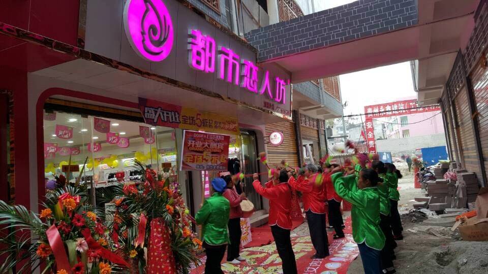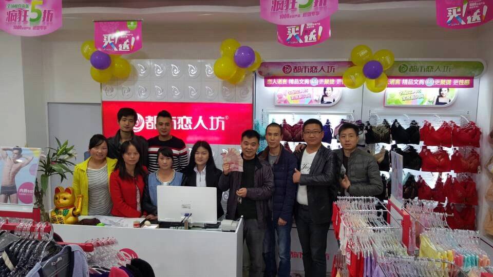覃老板是通过朋友介绍得知我们这个大家庭的,之前一直做的都是化妆品生意。在后来经过我们招商同事的了解过后决定开我们都市恋人坊。经过几个月的找店铺,终于在六枝郎岱镇找到了。经过一系列的准备,我们的店终于要开业了啦,等这一天老板可是很兴奋的,开业前两天我们就已经开始挂货了,店铺很大,帮忙的人员也很多,老板的亲戚朋友全部都过来帮忙了,经过两天的努力我们的货品终于陈列好了,就等着第二天的开业了。