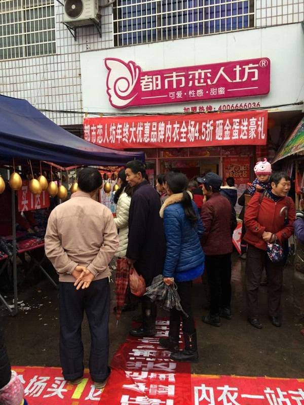 七甲坪是一个比较小的乡镇,活动这天下了好大的雨,我们的老板娘李姐是个特别勤奋热情有远见的人,虽然店铺是在乡镇但她的货品特别充足,她知道有货才有高业绩,所以早早的就备好了货品,也全力配合这次活动,要准备什么都准备到位了。活动主题是全场内衣4.5折,保暖买一送一,砸金蛋送豪礼!购满88元砸金蛋一次,购满168元砸两次,购满258元砸三次!这次活动是打折又送礼非常吸引顾客,虽然下了大雨还是有很多顾客进店选购,看见金灿灿的金蛋都想来试试砸砸看,看能砸到什么样的大奖!现在就让我们来看看活动那天热闹的场面吧!