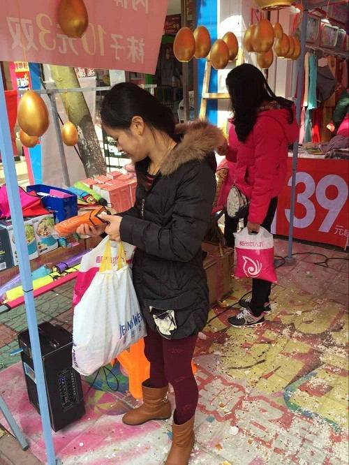 活动准备当天,到了一大批货,夹棉,保暖衣,打底裤…我们非常有信心,准备活动物料一直到晚上近十点,我们信心十足准备第二天打一场硬仗。活动当天督导现场直播客人砸金蛋,让活动现场高潮迭起 砸金蛋,金花四溅,我们客人高高兴兴购物,砸到奖品以及现金都是满载而归!!