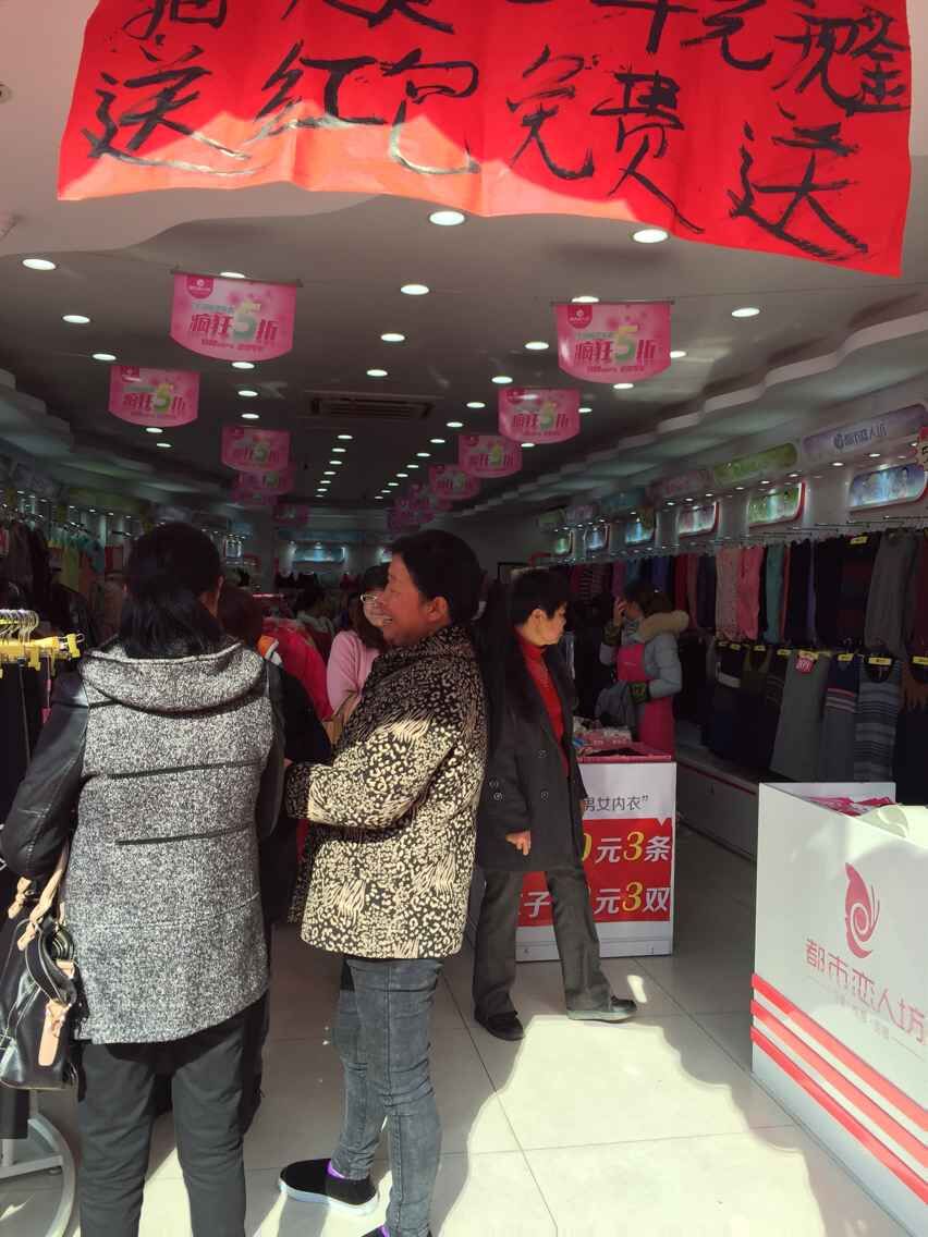 个寒冷的季节因为都市恋人坊的热情,而变得温暖。 喊麦声响起:我们的夹棉,我们的保暖全场5折起,礼品多多,惊喜多多,全场有买就有送,有买就有送,下面一起来参与到我们的活动现场中