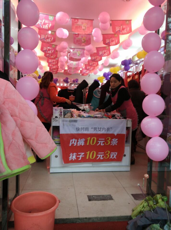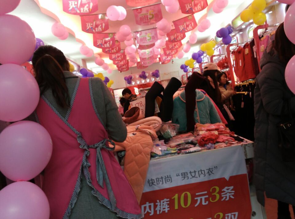 整个布场都以气球为主,从外看上去显得很漂亮。唯一美中不足的是:天公不作美,下着倾盆大雨。不过大家并没有因为天气而感到垂头丧气,开了一个早会,制定了一下目标,大家有了各自的分工 。虽然上午业绩并不好,但大家还是保持着激情,经过大家的共同努力,最终我们的活动业绩达到7566元!整天下来,夹棉卖得也是特别火爆。由此可见,一个团队的配合是多么重要。