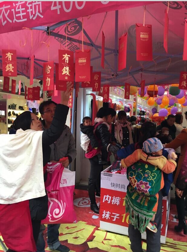 “兴旺之地,仁义之乡”的贵州省兴仁县王姐店周末活动开始啦,红包大派送了,王姐一直对我们都市恋人坊比较有信心,是自己在百度上搜索到我们都市恋人坊,然后到公司考察,开始没经验,店铺地址没选好,生意一直不怎么样,经过考察把店铺搬迁到步行街上,销售额是一个劲的往上窜,下面来看活动当天的情况吧。。。。