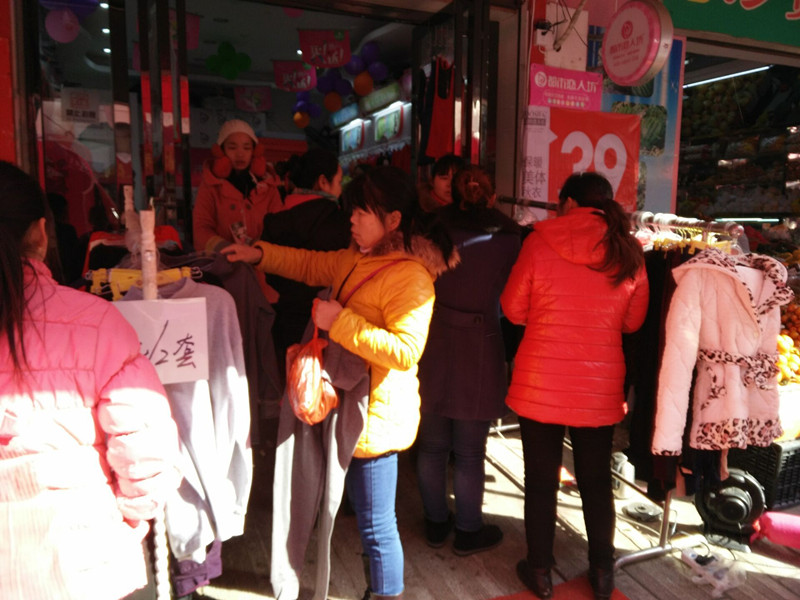 1.24活动当天,督导到店时我们的卢慧美女已经早早的把拱门和音乐放起来了,年终感恩回馈活动现场氛围瞬间高昂起来,虽然当天没有下雨,甚至还有一点点阳光,但气温还是零下5度,冻得直跺脚,气温低也促进了保暖和夹棉的销售,创下最终业绩7088。
