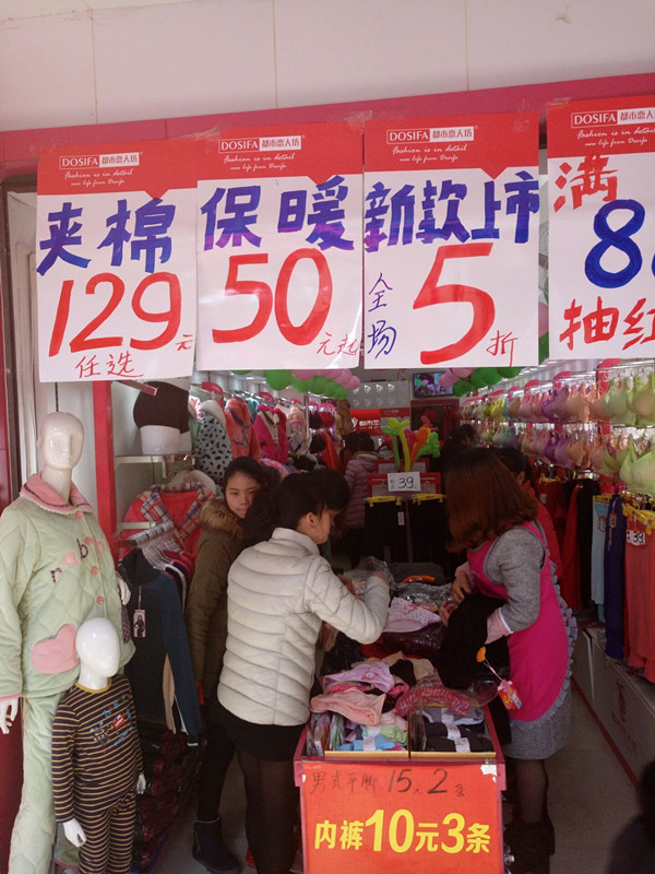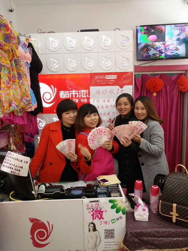 恭贺湖南郴州市汝城县梅姐1店又创优秀业绩8136元,梅姐在汝城这边是出了名的优秀商家!是个非常优秀的经营者,她经营内衣行业,童装,鞋业,包包等很多行业!在2015年全球经济不是很景气时。梅姐这边却丝毫不受影响,她经营的咱们都市恋人坊,在汝城可谓是妇孺皆知,两个店距离不到一百米,2.25号2店做活动的。取得佳绩。2.26号到咱们1店做活动,又创佳绩8136元,活动现场,频频爆场!生意非常火爆!每次活动都忙坏了我们两个优秀的导购姐姐,但是我们都非常开心,为了业绩。我们只有同一个目标。那就是只冲最高业绩!