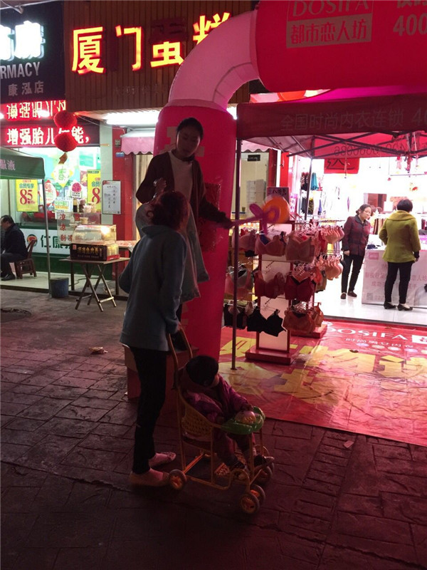 路过的人也是越来越多,我们喊不进来人,我们马上就想了一个办法用气球来吸引路过的,效果马上好转,路过的行人都被我们吸引到我们店铺呢!看看我们的活动现场吧;