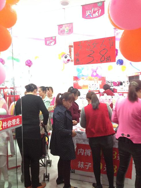 活动前一天我们早早的布置了温馨的卖场,同时也确定了3.8节的活动方案,正好下午姐订的一批新款也到了,我们把新款全都调到了最显眼的位置,我们为3.8节的活动做足了准备工作,信心满满的准备明天大卖!!!