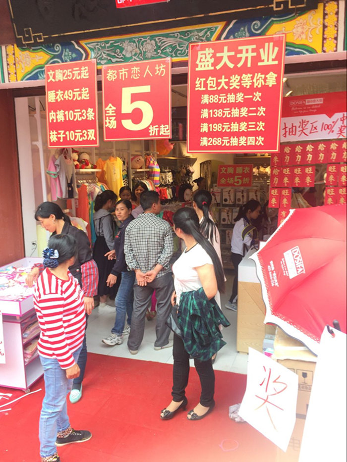 桐梓县素有“黔北门户”.”川黔锁钥“。是”中国方竹笋之乡“,气候宜人。向老板的店是在一条比较有特色的古街上,这里有好吃的好玩的,所以平常人流都比较多。所以新装修一出来,向老板就看中了它的高大上感觉,不拖泥带水的说换就换了,从装开业这天,我们早早的来布置好大气外场,重中之重的奖品大冰箱特扎眼,特吸引人想来买东西试试手气。。。所以我们从早到晚的爆场嗨得根本停不下来,整条古街就数我们店面最热闹,人最多。咋话不多说,有图有真相,来看看。。。