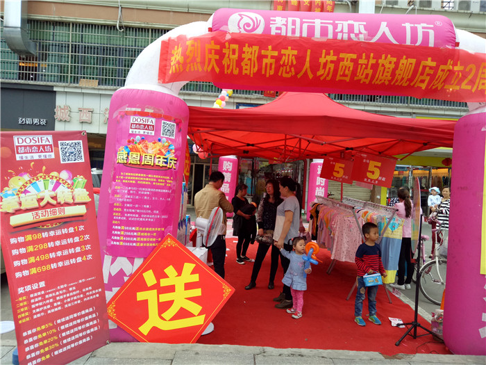 西站2店两周年了,两年以来建立了很多优质的老客户,在我们两周年店庆的感恩答谢会场,礼品堆积如山,更有免单大奖,看的让人眼花缭乱,幸运大转盘更是让很多的新老顾客大人小孩玩的不亦乐乎,周年庆最终以13494的业绩完美收官。