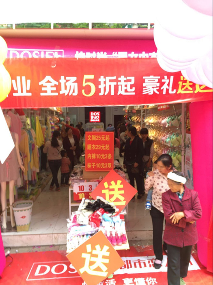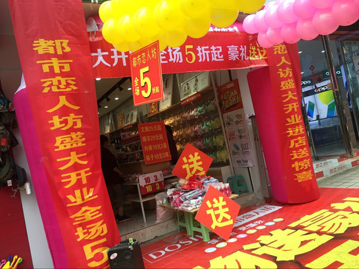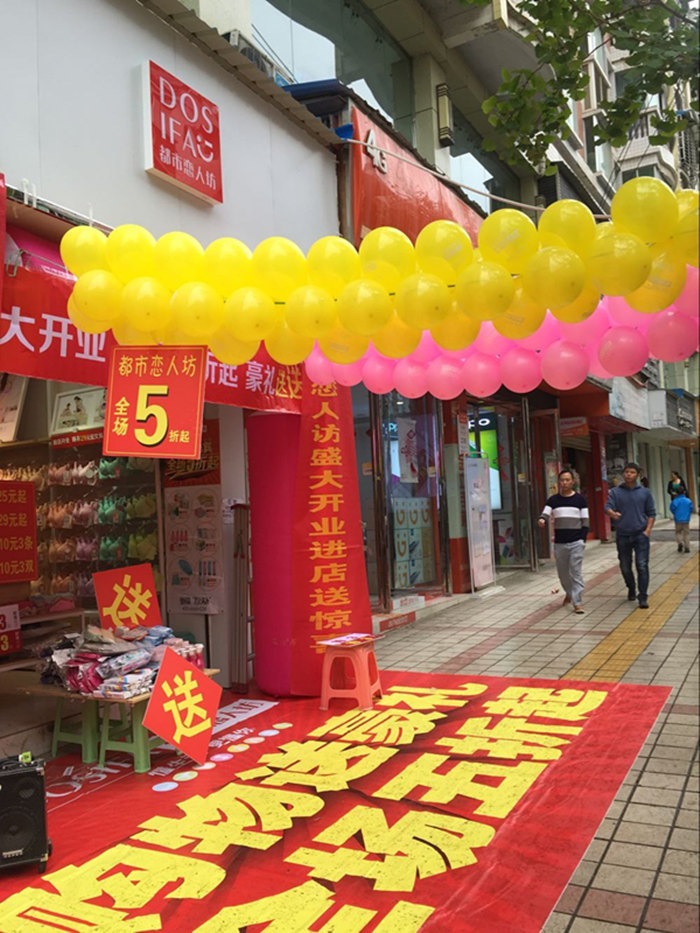 杨老板之前是做男装生意的,一直想改行,因为有亲戚在做我们都市恋人坊的品牌。后来经过了解以后,非常快速的就加盟了我们品牌,经过一系列的装修挂货。5月28号这天,我们的新店就红红火火的开业了。因为5月雨水比较多,连续下了好几天的雨,这天也是天公不作美,早上下起了雨。但是没关系,只要有人,我们就能卖出产品,卖出业绩。外场一切弄好以后,音乐放起,开始嗨起来了。也许是受我们热情感染,到中午雨停啦,人多了,我们更嗨了,人爆场得根本停不下来,废话不多说。。。咋们看图