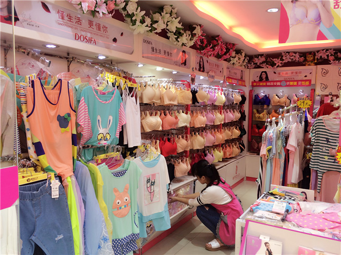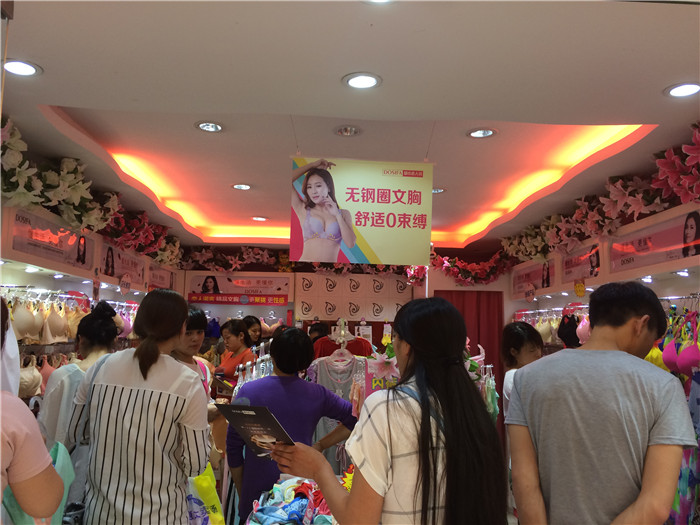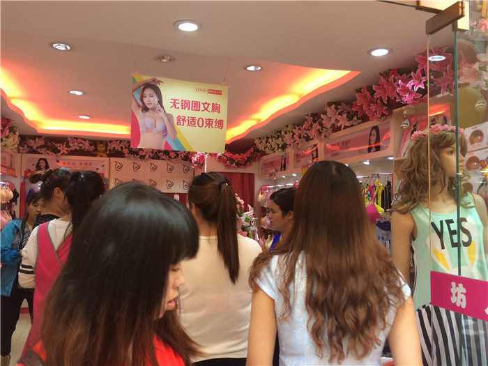 小店员边介绍睡衣,边招呼买丝袜的顾客,忙的不亦乐乎。
