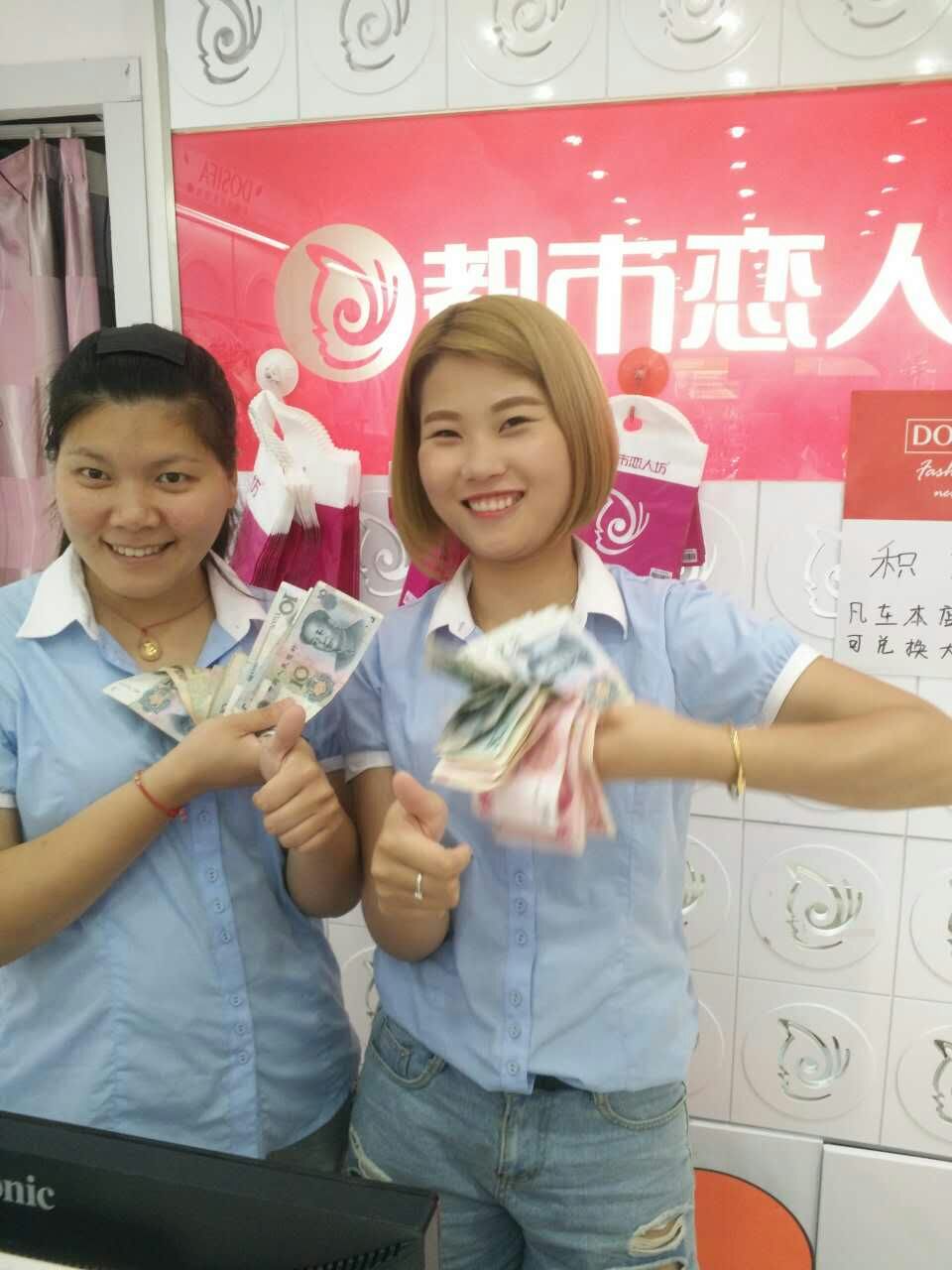 因为都市恋人坊内衣价格优惠,款式新颖,多样化,在当地也是非常受欢迎的,回头顾也多,再加入看到了公司发展的脚步快,前景较好,邵总很快把3店、4店开起来了,都是在市区最繁华的街道。邵总在员工管理方面也很有一手,员工业务精通,产品熟悉,每个员工也都能做活动、喊麦,工作非常有激情。 活动当天旁边做活动的商家也很多,但是我们业绩达到了6090元,这得益于我们能干的督导和优先的店员。