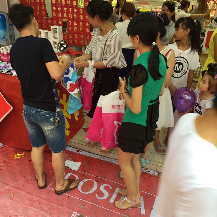 爆了!爆了!环江联营店周末业绩高达13752元。“分龙”节是环江毛南族自治县举家欢庆的少数民族特殊节日,我们也趁着这浓浓的节日气氛早早的把店铺布置好,这天太阳公公也被我们热情感染!晴空万里。随着外场的音乐响起来,红包挂起来,人流川流不息的被我们感染吸引进店,我们的姑娘们也忙的不亦乐乎,连我们老板娘(刚刚生产40天的90后年轻妈妈)也和我们奋战在一线。往来进店的顾客基本没有什么是空手而归,不带家居就带内衣,不带内衣就带防晒衣,不带防晒衣就带我们恋惠的化妆品⋯⋯ 满手的产品,展开的笑颜,满足的表情走出店铺。满载而归!话不多说下面-来瞧瞧当天的火爆的活动现场: