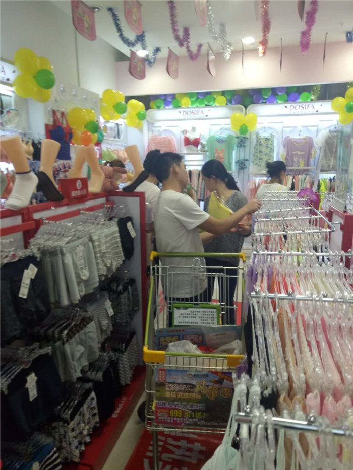 活动当天,倩倩的备货意识也很强烈,所以货品前期备的很足,尺码都齐全。因为是超市店,外场也不能布置,不能喊麦,只能利用所有的横幅,用气球把氛围营造出来,小蜜蜂喊起来,进店就送礼,促销促销做起来,人流涌动。