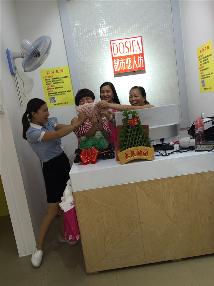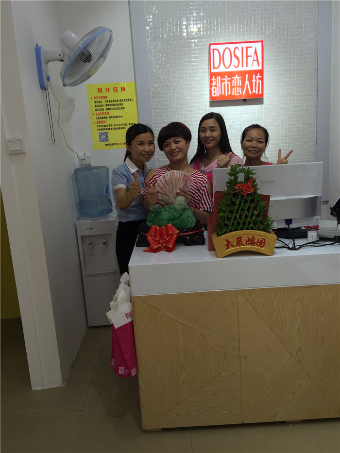 在4店开业前期工作准备中,挂货,布场在汪总外甥女刘娟合理安排下完成。至今为止现已有5个分店,汪总更是有自己的一套管理方法在。开业当天,场内外布置好我们进入到开业这种喜悦的气氛中,