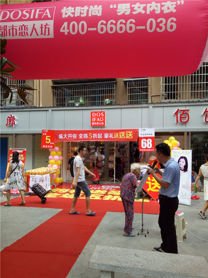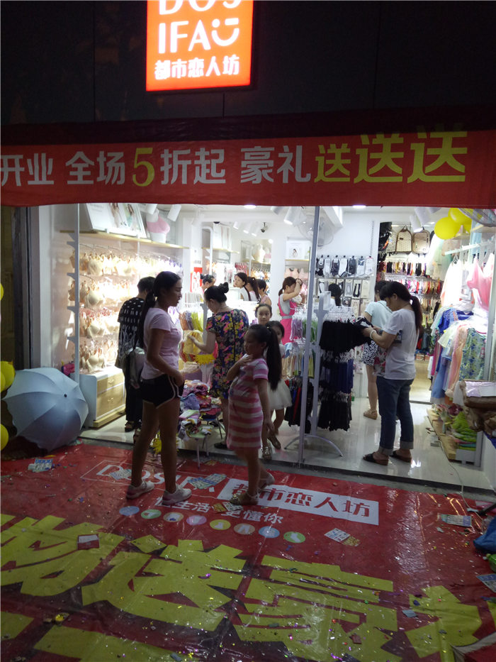 黄总以前一直做的是精品百货,在长沙有两三家门面,生意也做的挺红火的,从去年开始,就关注了我们都市恋人坊公司,3月份,也在我们公司签下了合同,然后就开始如火如荼地着手准备了。黄总的店位于小区路口,人流还是蛮大的,前期试营业了一段时间,每天业绩都是非常可观。