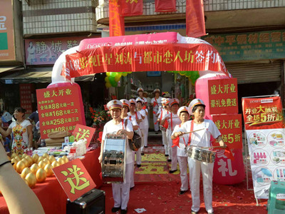 开业当天大气的外场布置,热情的锣鼓队做好宣传工作,砸金蛋的抽奖方式吸引眼球,当天气温高达40℃,依然挡不住顾客的热情![]()