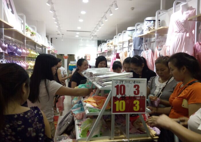 今天活动全场满100送20元,买就送,特价商品10元3样,精品文胸买一送一,活动还是非常具有吸引力。我在门口喊人,引进人流,林姐与店员也非常给力,接待的客人基本成交,经过一天的辛苦再创新业绩高达7297,都市恋人坊是一个创造奇迹的品牌!