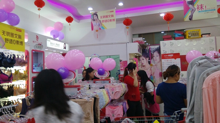 热烈庆祝苏州冯总中秋节活动业绩高达9009。2011年冯总就加盟了我们公司的品牌内衣店,生意大好,后来连续又开了几家,现在正有一家恋惠店正在紧锣密鼓的筹备中。 陈列整齐,颜色鲜亮