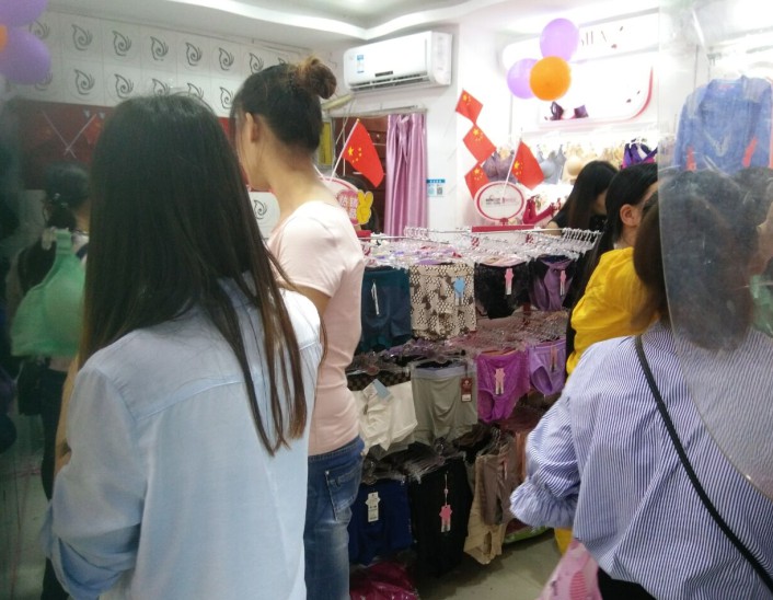 活动当天为了举国同庆,我们的店面也布满了色彩,(气球拱门,海报,小国旗,,,)走进店内总会有不一样的气氛,虽然店面只有18个平方布置起来却给人一种很温馨的画面,“俗话说:麻雀虽小五脏俱全”我们的内衣店虽小,但店里的货品却不少,满店整齐的货品,色彩缤纷的颜色,让客人们看的眼花缭乱,进店总是不由自主的购买一些,还可以免费砸个金蛋,产品礼品一起高高兴兴的带回家。
