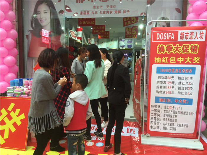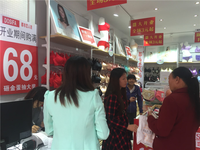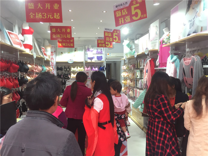 黄姐是平江岑川本地人,在当地有开母婴店、化妆品店,母婴店有孕妇装这一块,孕妇装这一块在店铺销售额的占比比较高,就打算想开一家品牌内衣店。通过在当地其他乡镇进行考察品牌项目,发现除她本地岑川之外,周边乡镇都有一家名为都市恋人坊的品牌内衣店。偶然的机会看到了公司督导下店做促销活动的火爆场面。于是便打通了公司的加盟热线,了解到公司一系列的优惠政策,以及后期的五维督导服务,便毫不犹豫的加入了都市恋人坊这个大家庭。在活动的前一天,经过对产品进行了陈列调整,耐心的讲解产品知识。使店铺在促销活动前有了舒心上档次的产品陈列,红红火火的外场布景。点燃了当地人们的热情,使活动持续火爆进行!最终达到6166元的高业绩!