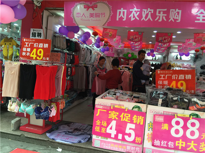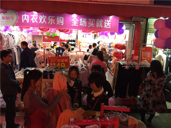 早早的来到店铺,让我看到的是店铺内的员工自觉自主地、分工很明确地在做些今天活动必要的礼品和物料。在所有的场布完后不久,很不幸运的是城管让我们把刚布置好的外场撤掉,快速撤掉拱门后,我们并没有受到这个事情的影响,而开始我们的活动之旅。刚开始活动时,音乐放的很小声,除督导在外,一个员工在外拉人,一个员工打汽球吸引经过店门口带小孩的顾客。上午人流并不多,但我们的成交率很高,而在我们正对面的另个内衣店,员工全部站在门口看着我们做业绩。在中午那一会儿发生了点小插曲-下雨,但在没多久雨就停了。