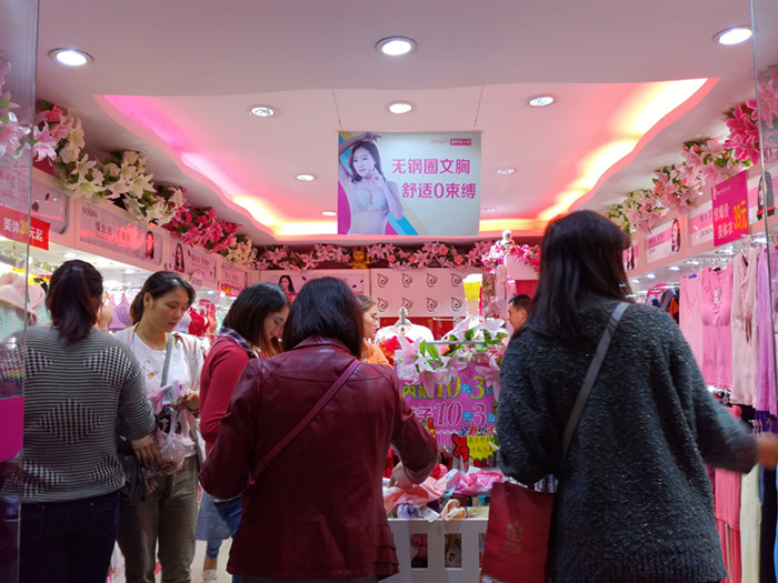 活动当天有点毛毛雨,但是仍然挡不住顾客的热情,这边的老顾客挺多的,对品牌的忠诚度也很高,因为我们的文胸精美实惠,新款睡衣也是很受欢迎的。