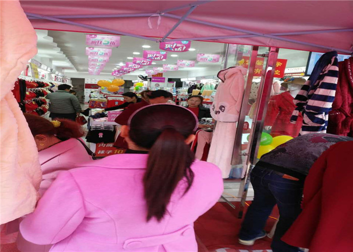 孟姐加盟我们都市恋人坊也有一年多的时间了,生意也是一直都是红红火火的!一到这个时候孟姐就早早的备好了满满的货品,整个仓库都是夹棉,保暖和绒类的睡衣,在活动那天,我们的老板早早的就起来把帐篷拱门,礼品台,红包全部都准备好了,我们的督导一喊麦,顾客就络绎不绝的进来了,在忙在时候我们的老板也帮着我们的督导也喊起来了!忙忙碌碌一天,我们最后以9825的业绩结束了今天!下面我们来看看我们活动的现场吧!