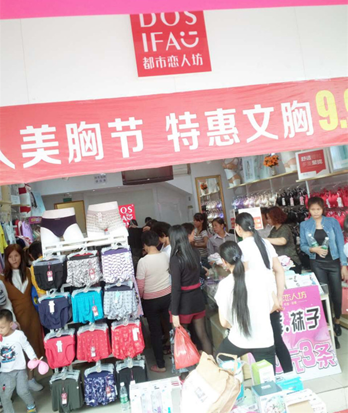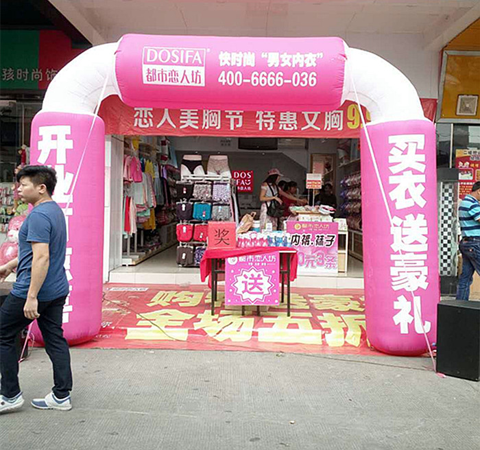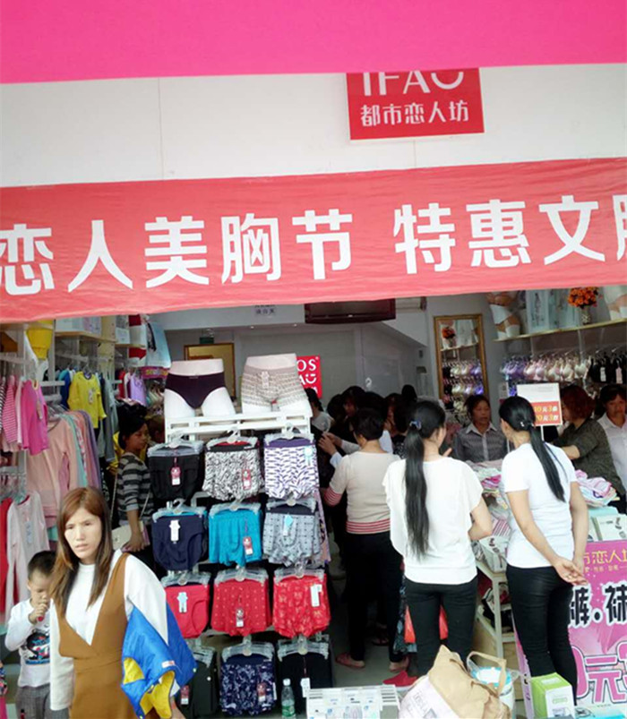 佛山沙边李老板从事内衣零售行业多年,今年三月份换掉之前品牌加入我们都市恋人坊这个大家庭。11月1日活动当天,一大早店里的美女店员就布置好了外场,崭新的拱门、鲜红的地胶、琳琅满目的礼品将外场气氛衬托的喜庆大气。当天的活动主题是购物抽奖送好礼,全场买满68元现场抽奖1次、买满128元抽奖2次、买满168抽奖3次,活动现场场面火爆……