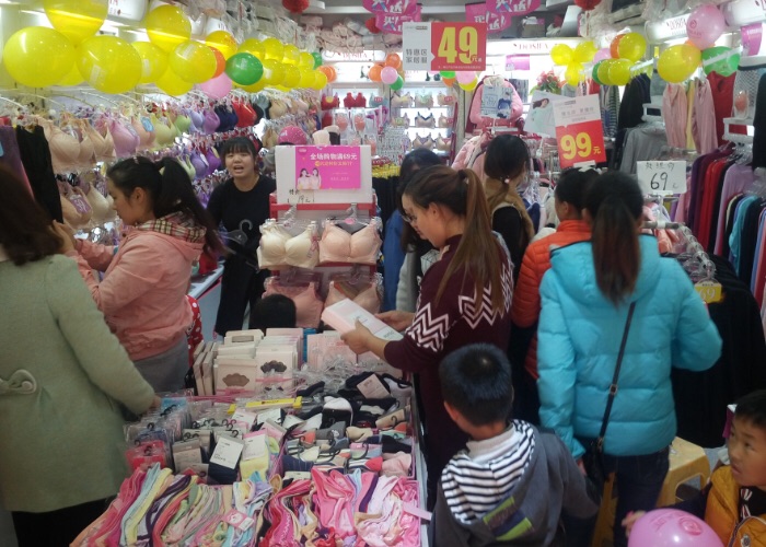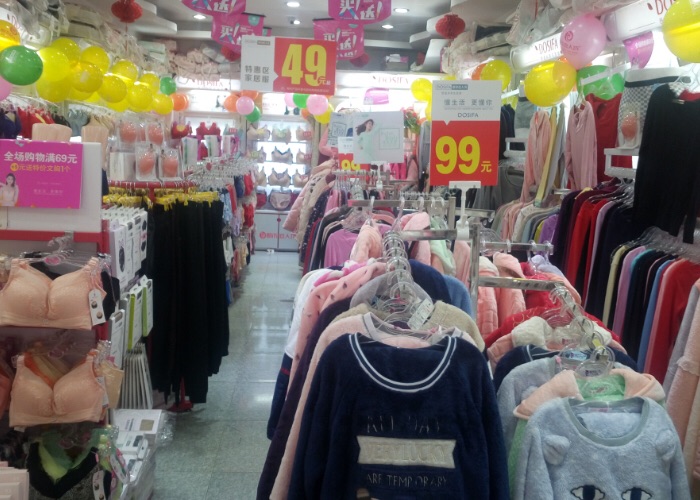 冬款货品超级多,50平的店铺都显得如此拥挤。