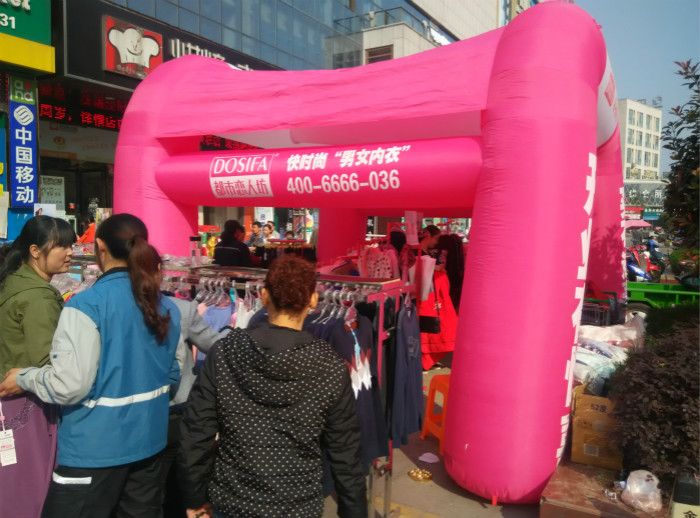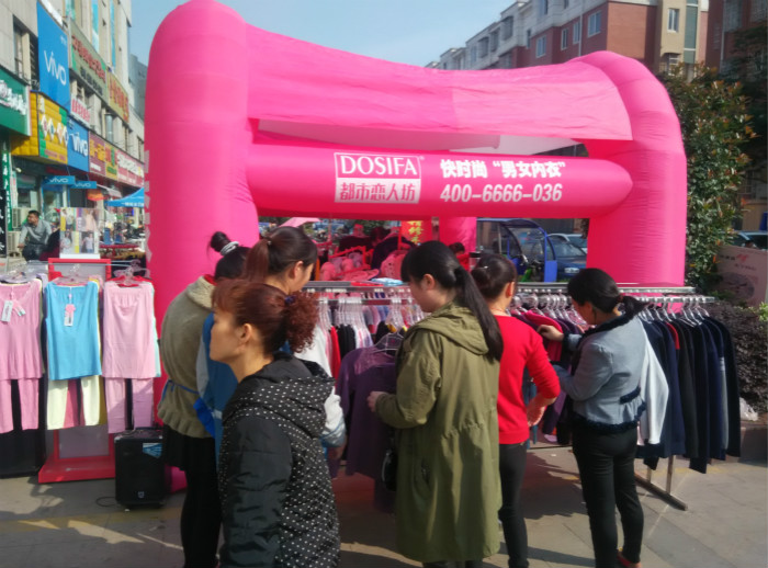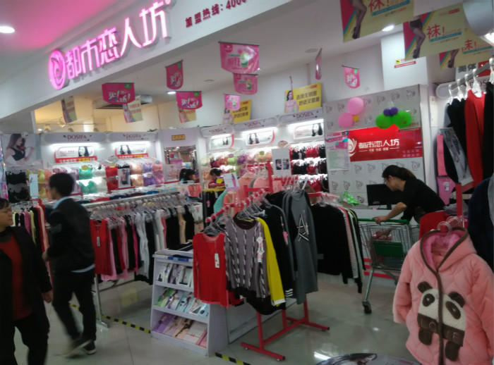 陈姐是2014年加入我们都市恋人坊这个大家庭的,之前一直是在工厂里上班的。因为她的亲戚赵勤松加盟了我们都市恋人坊做的非常不错。通过了解我们都市恋人坊售后服务非常的好,产品价格也很优惠同时款式也很新怡,陈姐下定决心辞去工作依然的加盟我都市恋人坊。一大早我们就把外场布置完毕,因为陈姐店是超市店所以做活动的时候只能把货全部搬到外面来促销。下面我们来看看陈姐的店。