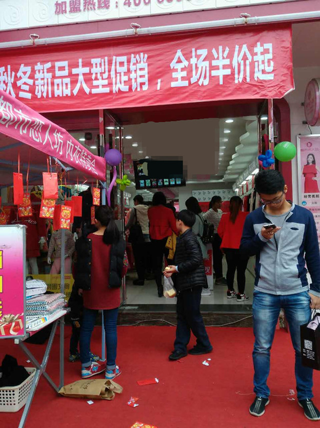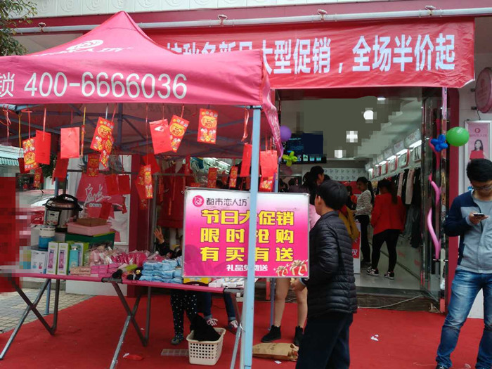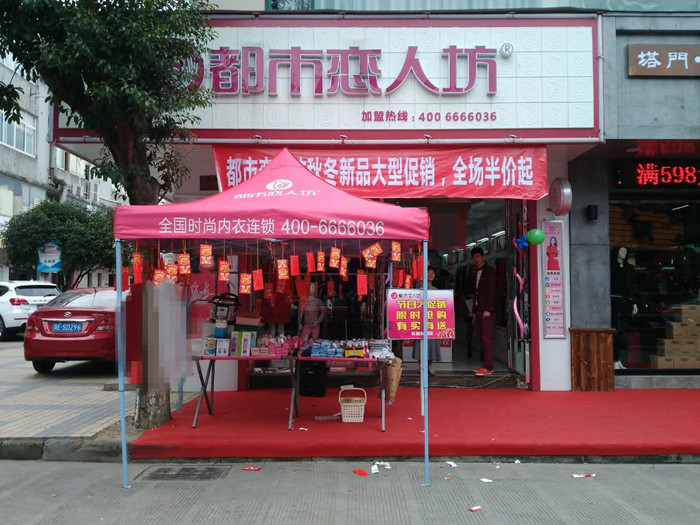 何总是湖州本地人自家有间店面,开始出租给别人闲来没事就喜欢去店里或街上看看。偶然的机会发现朋友做都市恋人坊做的很不错,于是经多方打听和到公司了解在2013年加入了我们的品牌与都市恋人坊合作,何总不仅用自己店开了都市恋人坊,这几年还在积极的找店面在别人那租了好几个来开都市恋人坊,现员工近20名,轻松的管理模式让何总夫妇轻轻松松拿下四家店。活动当天天气大好,保暖、夹棉等产品更是大卖