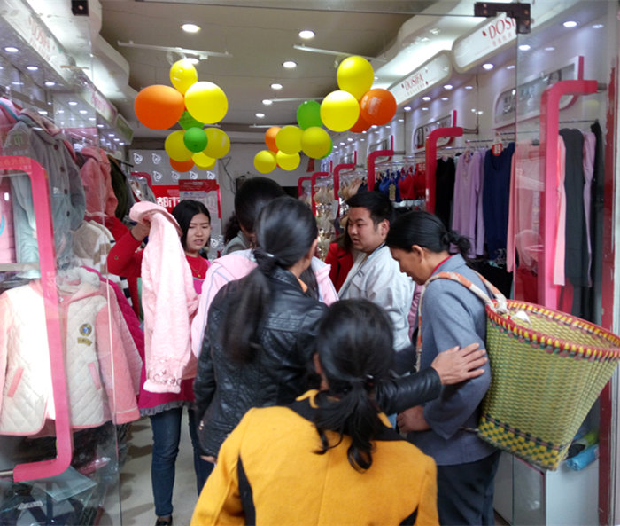 王姐的店在遵义的一个镇上,平时这里没什么人,只有当赶集的时候人才出来,活动当天,天气早已降温,(天气降温,我们降价)是我们今天的活动主题,再加上我们清仓的优惠力度,热情的服务,让我们的活动持续火爆,活动前我们给自己订了今天的目标,我们一直按着目标一步步冲刺目标,活动一天下我们最终达到6149的高额业绩~