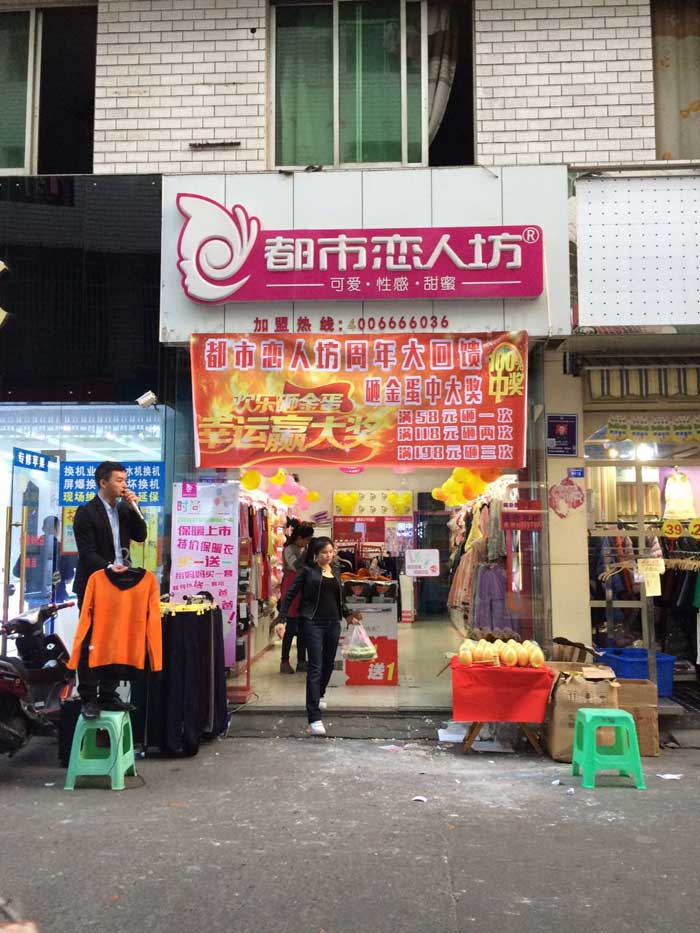 漆老板是去年加入的我们都市恋人坊,一直对我们品牌抱着很大的信心,这次周末活动天空作美,当我们的外场布置好了,音响想起来,来来往往的行人也陆陆续续的走进我们的店铺,被我们的店铺饱满的产品所吸引,这个季节也正式销售夹棉和保暖的旺季,此时此刻购买夹棉的几套几套的购买,还有保暖衣也是父母一套,爷爷奶奶一套,我们都忙的不亦乐乎,看到老板忙碌的样子,都笑开了花,加入我们都市恋人坊,你也会和漆老板一样笑开怀,这就是充足的货品,给力的销售,来看看我们的活动现场。