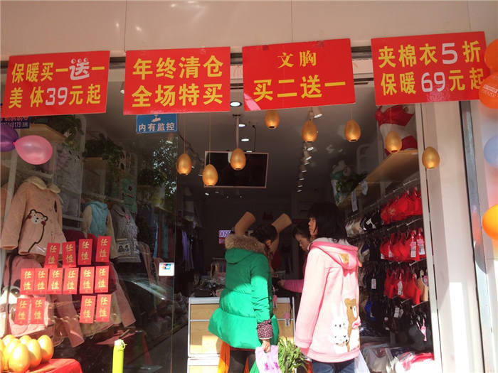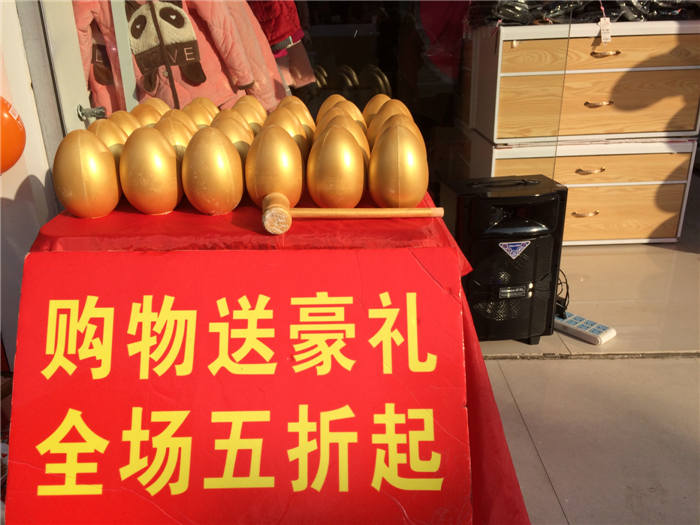 一到店里我们就在商量着活动主题,罗姐也很是配合我们,一起参与场内场外的布置,开始挂金蛋,摆礼品,天气也非常不错,到了这种忘记的时候,咱们的保暖夹棉睡衣也是几套几套卖,大单一个一个,对面的人都被我们活动氛围所吸引过来,所以业绩蹭蹭蹭的上来了,那么咱们看看活动现场吧: