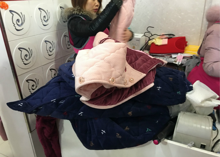 我们的夹棉也是一套两套三套的拿哦,我们的店员也是忙的不可开交,一个收银一个装袋,两个人搭配干活才不累嘛,团队意识强,赞赞赞!!!
