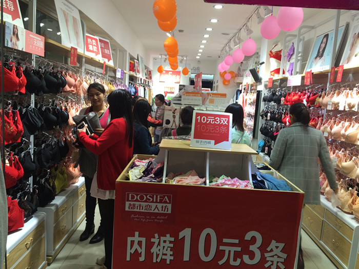 热烈庆祝东莞石碣镇芳姐内衣店,周末活动业绩高达9709!芳姐是都市恋人坊的老客户了,一直紧跟着公司的脚步在走。在年初刚推出第二个项目品牌恋惠优品时,毫不犹豫就选择了开了广东第一家恋惠优品! 因为内衣店的位置在商圈不是很好,但是因为内衣店和恋惠店挨着,强有力带动了周边的消费人流。现在两家店铺的业绩也是蒸蒸日上!下面让我们先来感受一下内衣店都市恋人坊的活动现场吧!!!