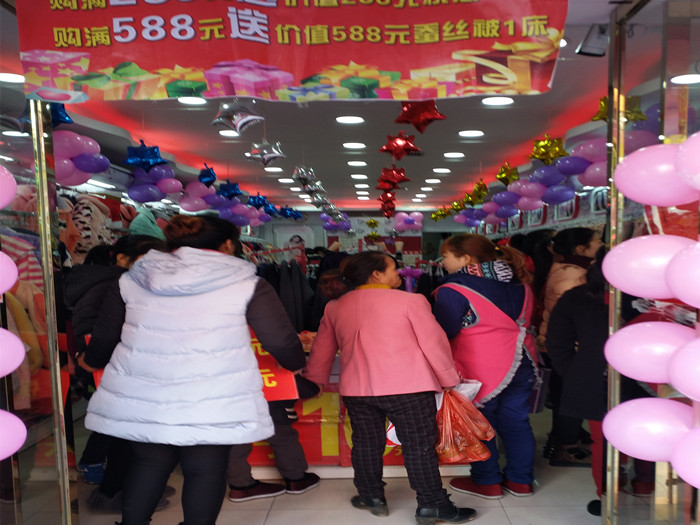 谢姐已经加入公司5年的时间,从当初的一家店到现在的13家连锁,这13家店铺遍布整个湖南,娄底涟源市是谢姐的第7家店铺,生意由谢姐的姐姐亲自打理,相当红火,就连隔壁过去第五个门面的一个内衣品牌因为我们的生意太红火,店铺经营部下去撤走啦。11.26当天天气非常不错,又是周六,人流量也比较多,谢姐一早就跟同县城的一个品牌珠宝店合作做促销活动,购物满188元送价值158珠宝,购物288元送价值208的珠宝,活动效果非常不错,最终我们以10409的高业绩结束这场活动,下面来看下我们火爆的活动现场。