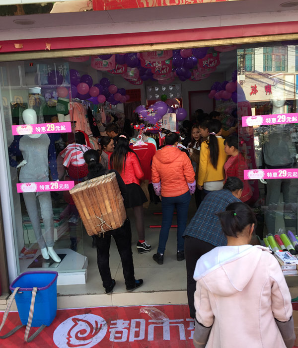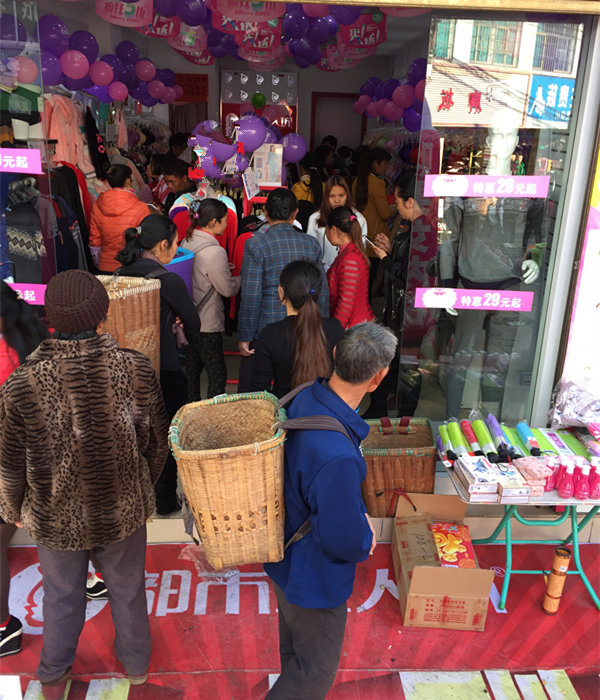 热闹的气氛和简洁明了的陈列很快就吸引来了街上大量的顾客.王姐忙的不亦乐乎.我也在外面用喊麦的方式吸引更多的顾客进店挑选