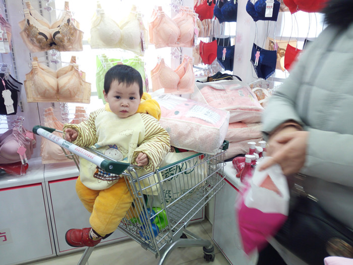 还有宝宝陪着妈妈来买夹棉。