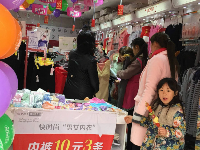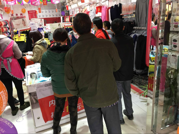 看看我们的顾客,男士女士都进来买啦!!我们的货品多,款式齐全,任挑任选。