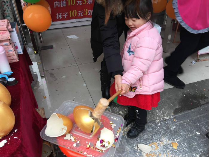 看看我们顾客砸金蛋时候的期待与开心的笑容