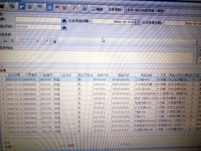 16年12月31号,天气晴朗,似乎是好兆头。早上我们早早就来到店里为活动做准备,保暖和夹棉全场折上折!,督导激情的喊麦,店员专业的销售技巧,加上公司物美价廉的商品,大单不断,好礼送不停,人流量也是杠杠的!杨大哥已经开了我们公司的1店、3店和4店3个店面了,生意一直都很好,紧跟公司步伐,积极备货,2店也已经签约了就等明年开业大吉了,祝杨大哥生意红红火火,2016完美收官,2017必将大卖!!!让我们一起看看当天的销售情况吧!!!合肥办事处徐月棠