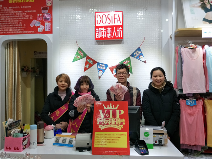 潘先生是12年就加盟了我们都市恋人坊,也算是老加盟商了,现在是2个内衣店,1个恋惠优品 ,生意在昆山也是佼佼者,之前潘先生也是给自己家亲戚打工,后来通过招商网络了解到都市恋人坊以后决定加盟我们家内衣店。1店生意不错,就在同条街500米开了分店,今年8月份在都市恋人坊隔壁拿到一个店面做的恋惠优品,潘先生觉得我们公司的五维服务好,就一直跟着公司干。明年还想把恋惠优品扩大店面。