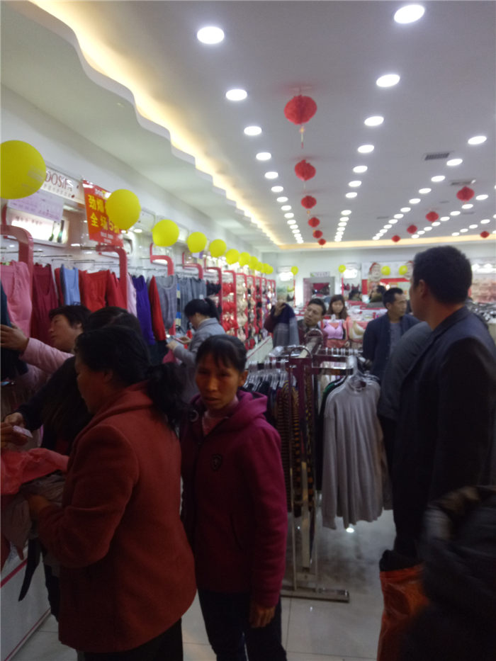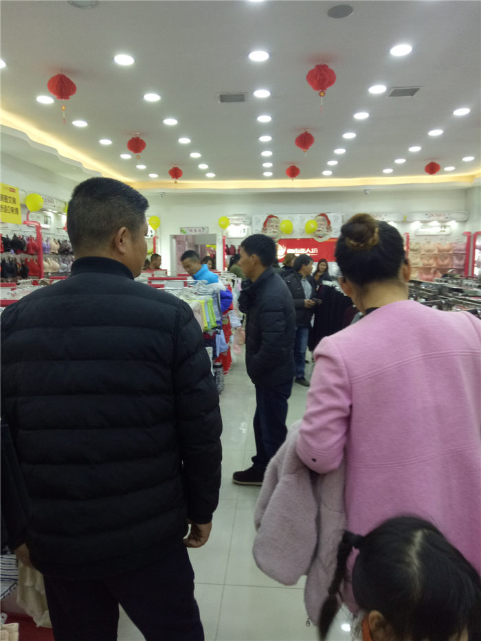 活动当天,天气还是有点凉风,看着街上稀少的人流,店长暗暗担心今天的业绩,但是音响外场布置好以后,行人看着我们店铺人群涌动,纷纷往店里走去,其中一位顾客夹棉9套一拿,特别给力,连隔壁的老板也过来消费,为我们增添人气,大家都在自己的岗位上战斗,收银台也时不时就排着队伍收银。
